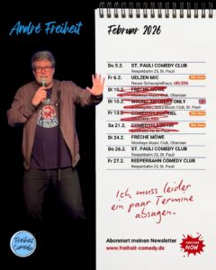 Ich bin gebürtiger Münchner und wohne in Hamburg. Das musste ja schief gehen. Nach 25 Jahren Managerkarriere mache ich jetzt Stand-Up Comedy. Vielleicht war das aber auch die ganze Zeit schon meine Bestimmung, und mein bisheriges Leben diente einfach nur dazu, lustige Geschichten für die Bühne zu schreiben.