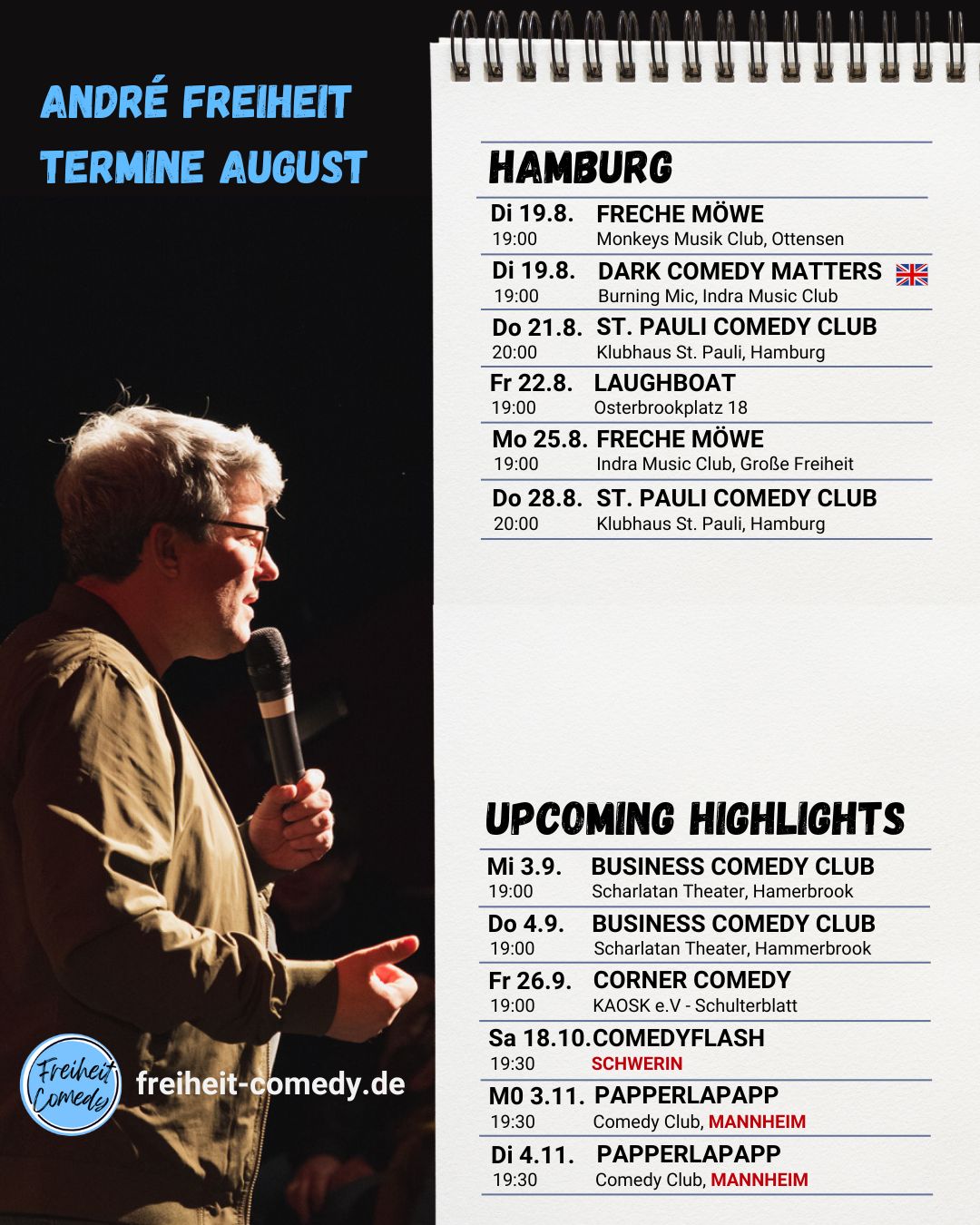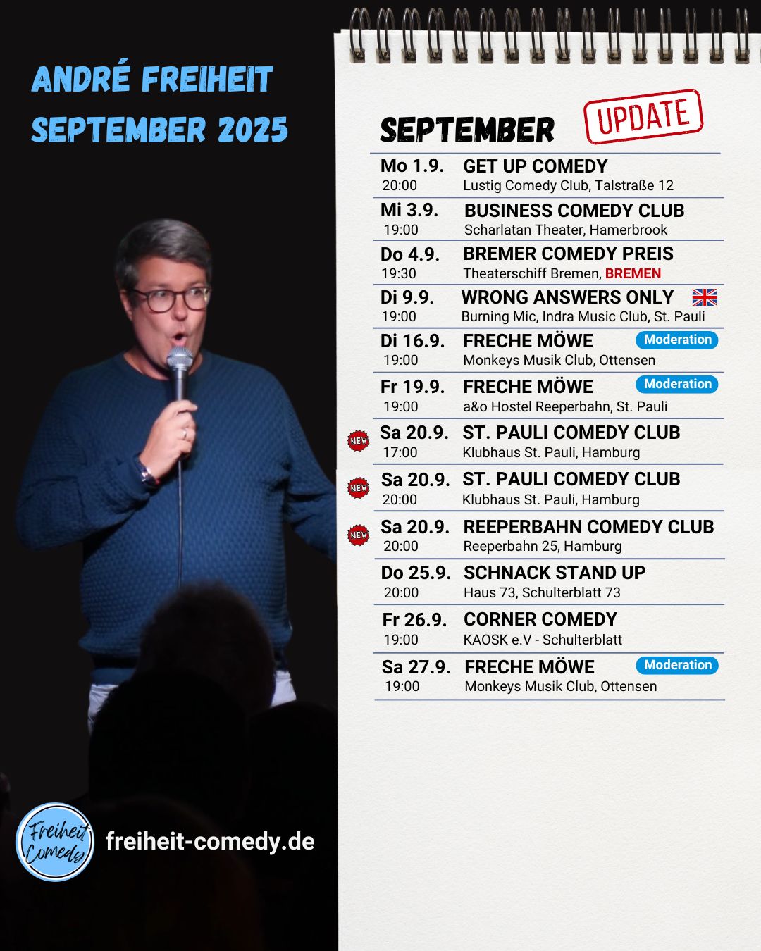 Ich bin gebürtiger Münchner und wohne in Hamburg. Das musste ja schief gehen. Nach 25 Jahren Managerkarriere mache ich jetzt Stand-Up Comedy. Vielleicht war das aber auch die ganze Zeit schon meine Bestimmung, und mein bisheriges Leben diente einfach nur dazu, lustige Geschichten für die Bühne zu schreiben.